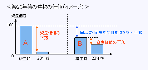 ・また、竣工当時の材料等記録に基づき、築20年後の価格は当時の価格から経年減価等を引いたもの(積算ベース価値)と考えることができる。